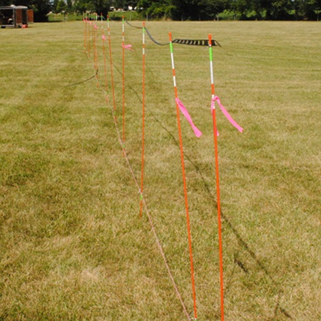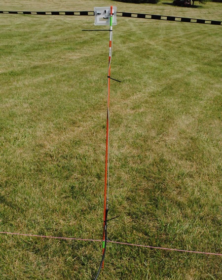 For a high visibility option search for “hillman orange reflective rod” in your favorite search engine. Lowes has them. They are not designed to hold wire like the fiberglass above, but some thought can make these work. I used them for this Field Day prototype…