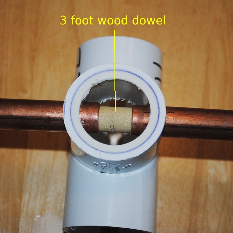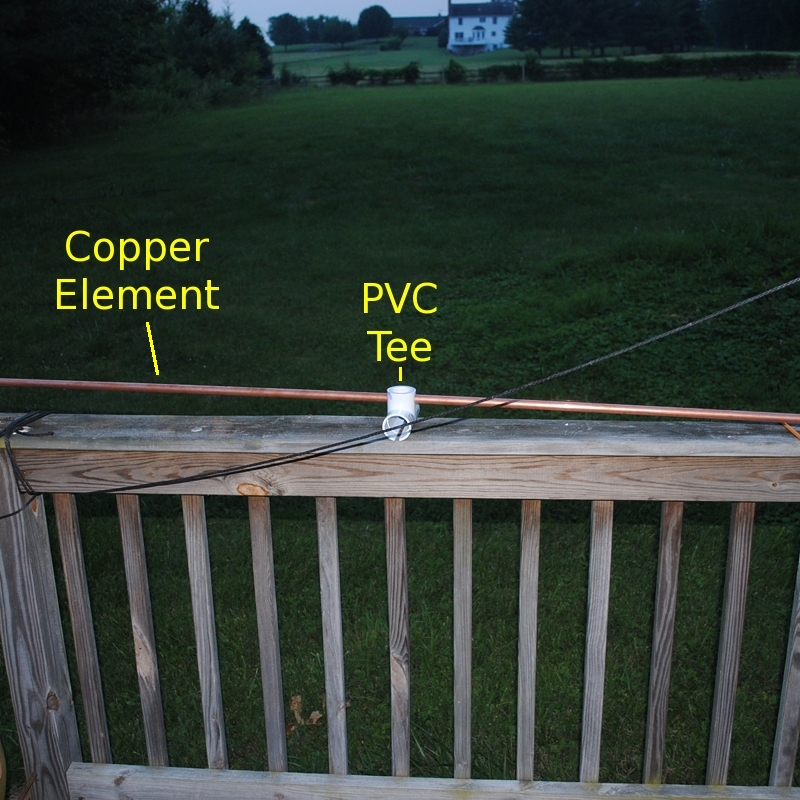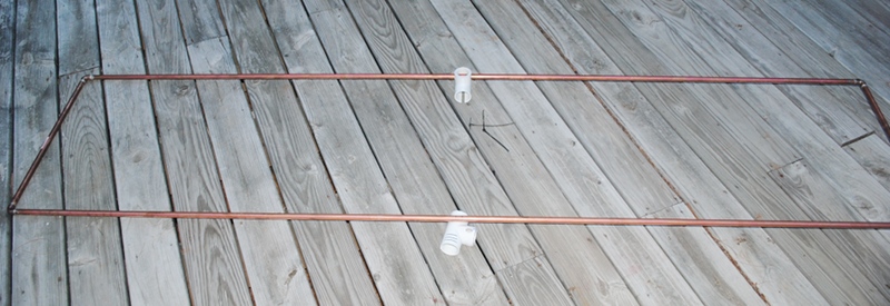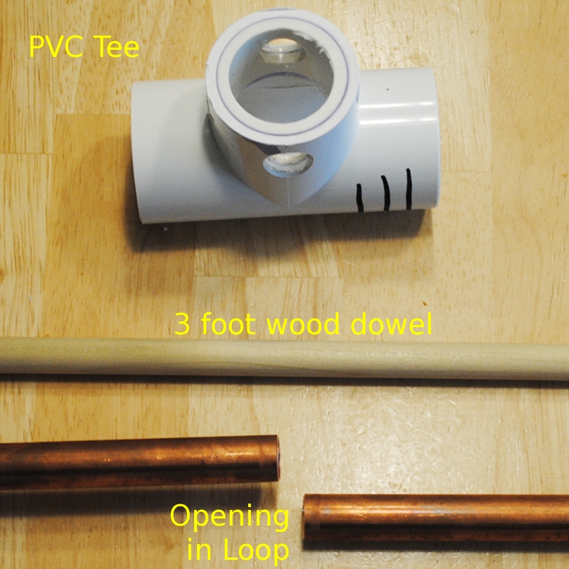 A three foot wood dowel reinforces the break in the copper at the loop feed point.