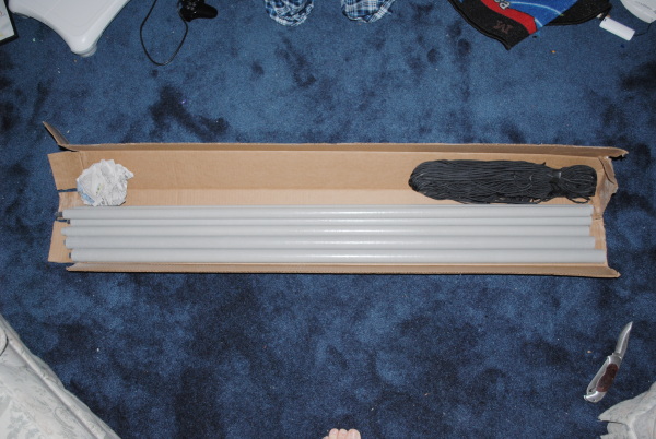 Below are some photos of the arrival plus subsequent modifications and assembly of the Max-Gain Systems fiberglass kit. I needed some of the black rope also so simply added that to my Max-Gain order.