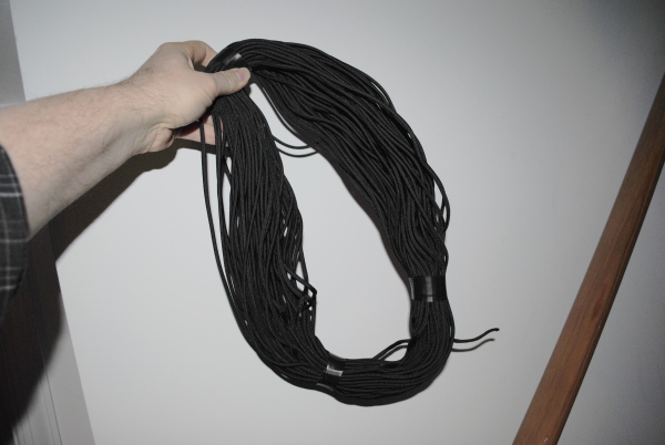 For wire I purchased 200 feet of 14 AWG Flexweave with Clear UV Resistant PVC Insulation. This wire is simply fantastic and has saved my bacon several times including at Field Day 2010 when I had to unravel the hex beam. My only concern is will it stretch over time and change the tuning. Time will tell.