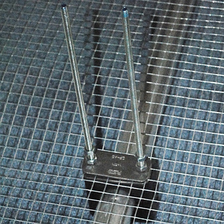 View of DX Engineering Resin Support Block and Reinforcement Plates holding the galvanized mesh tight.