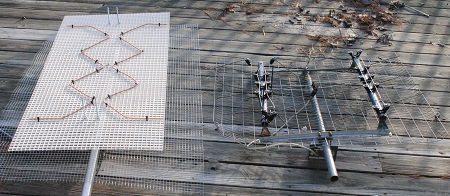 Comparison of the new Hoverman antenna (left) with the venerable Channel Master 4228. The Hoverman is quite a bit taller.