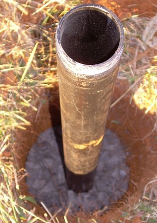 Here is a view of the antenna mounting pipe with about one foot of gravel poured around the base.